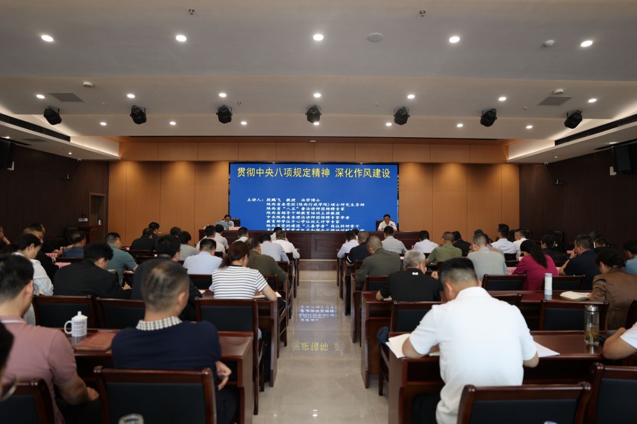 本网讯    5月8日,365官网召开深入贯彻中央八项规定精神学习教育专题辅导报告,邀请中共陕西省委党校(陕西行政学院)党建教研部段鹏飞教授做了题为《贯彻中央八项规定精神 深化作风建设》的辅导报告。校领导、副处级以上干部参加学习,党委副书记张卫国主持报告会。