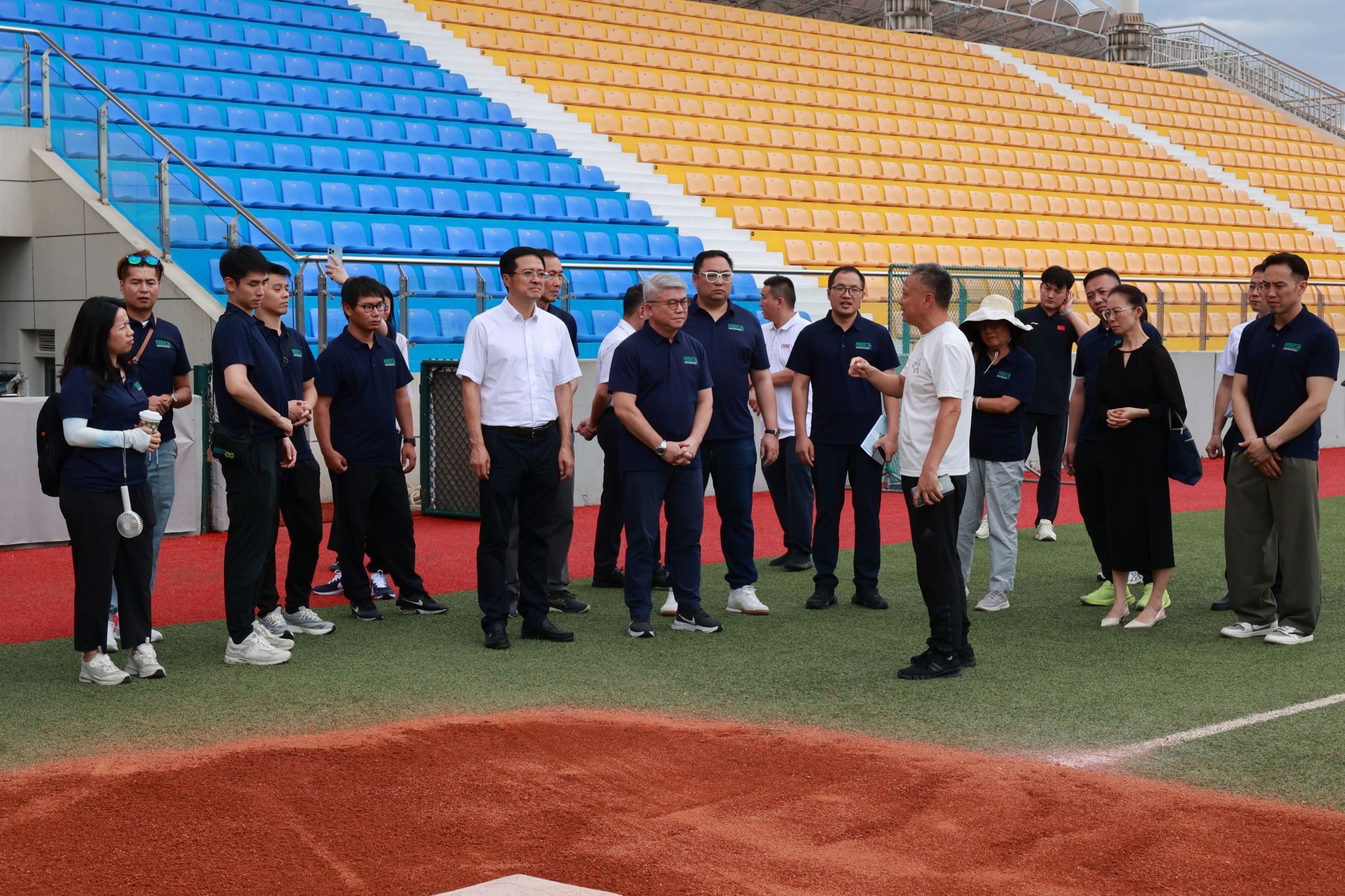 潘永权一行先后参观了十四运会手曲棒垒橄场馆、教学综合楼等,实地考察了各场馆的功能分区、建筑设计和运营规划。365官网基建处负责人就场馆建设及后续使用中的关键问题作了详细说明。来宾对365官网高标准的设施建设、科学化的管理理念、合理的用地分工给予了高度评价。