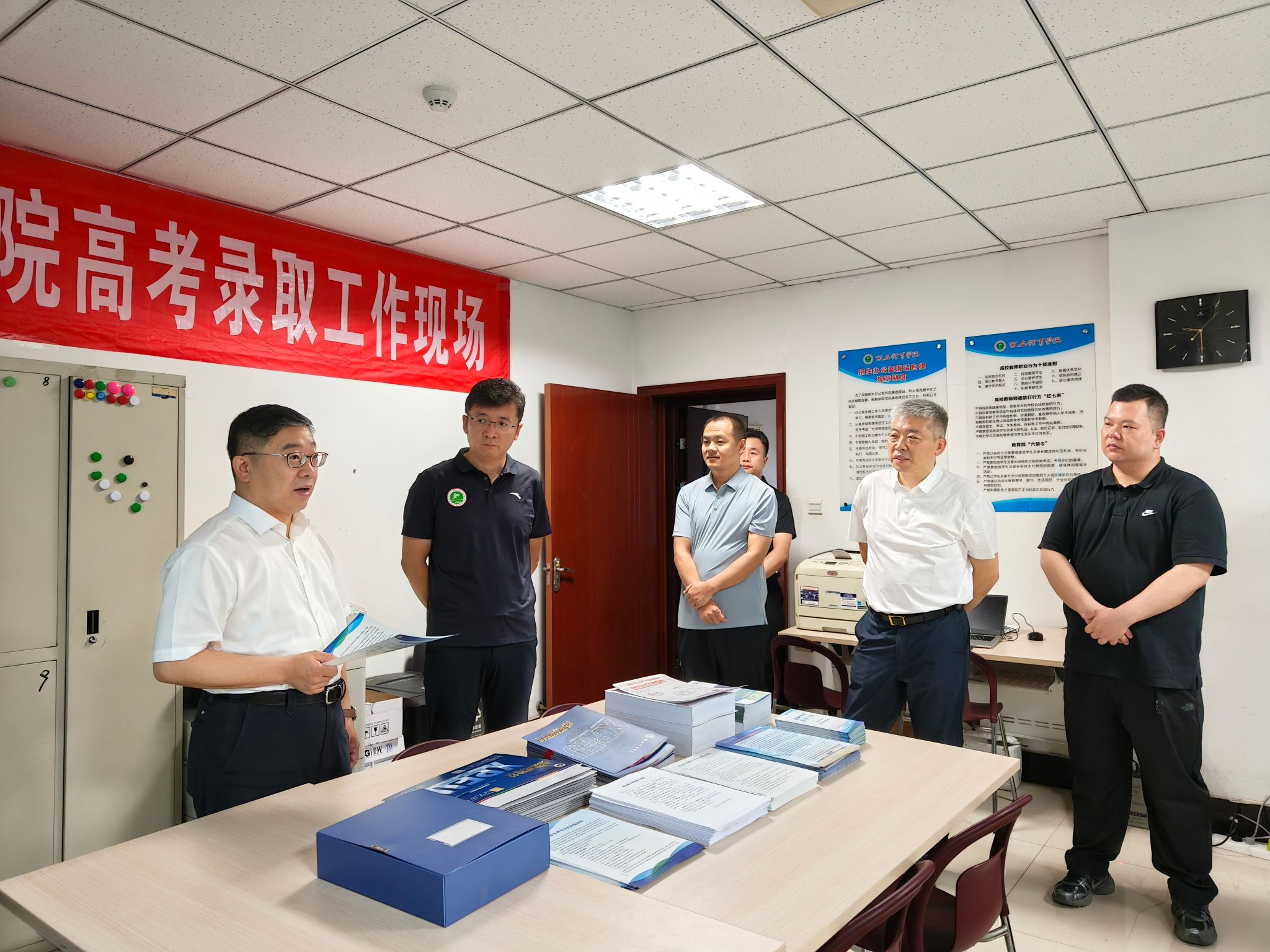 招生办主任李明代表全体工作人员郑重表态,全体人员将恪尽职守,牢固树立底线思维,将招录安全放在首位,确保招录工作公平、公正、公开,以高度的责任感和使命感圆满完成本科招生录取任务。同时,将以此次调研为契机,持续优化招生计划,创新招生宣传模式,不断提升录取生源质量,为学校发展贡献力量。