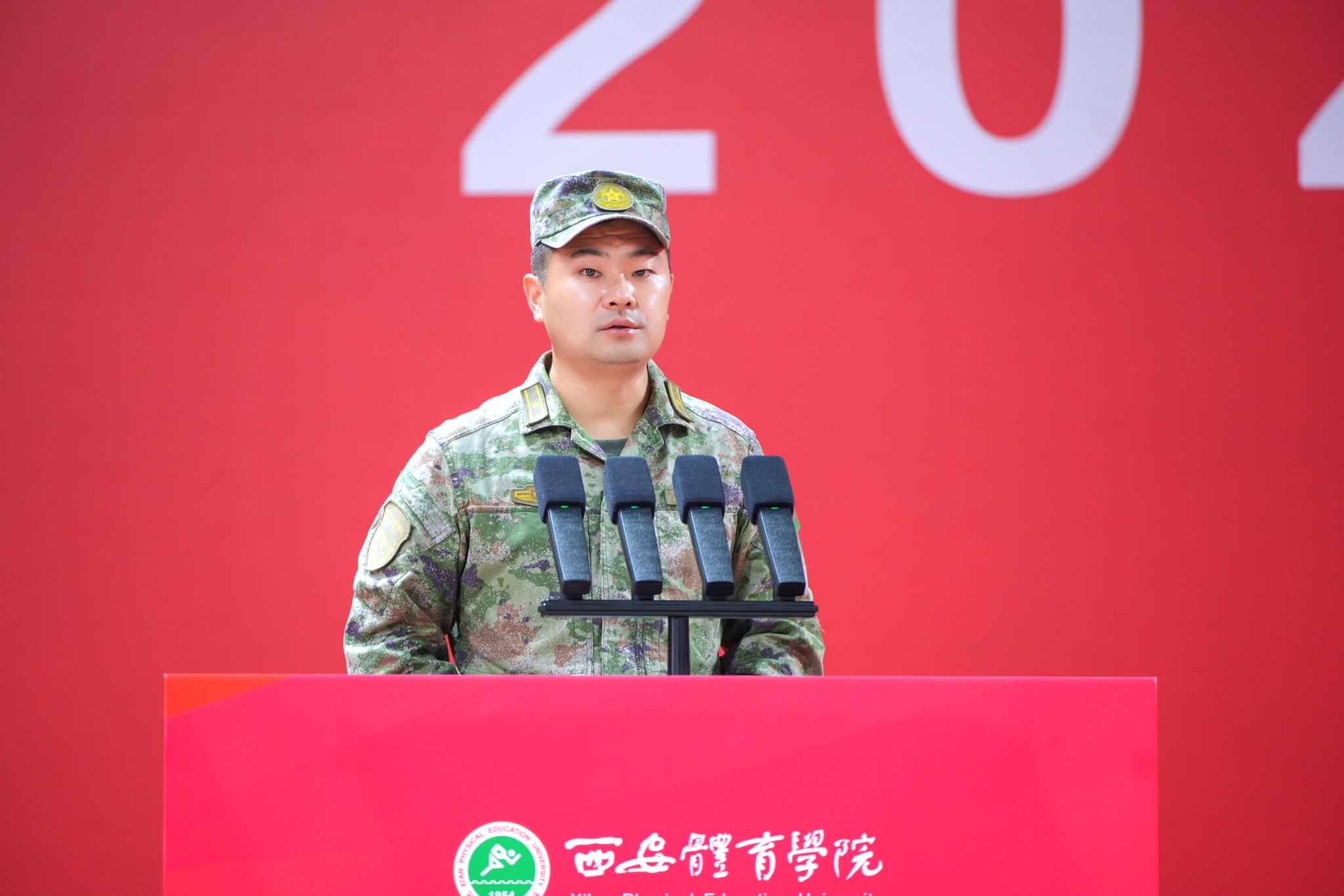 体育教育训练学院教师李国华作为教师代表发言,希望同学们砥砺奋进,拥抱未来,牢记“严谨、创新、团结、拼搏”的校训,以强国使命为己任,锤炼意志,增强体魄,追求真理,奉献社会。
