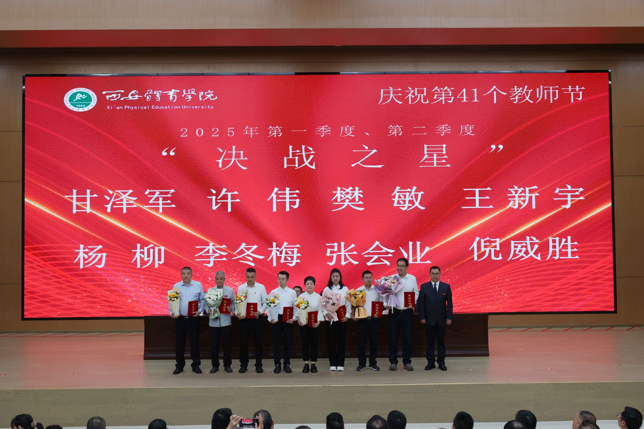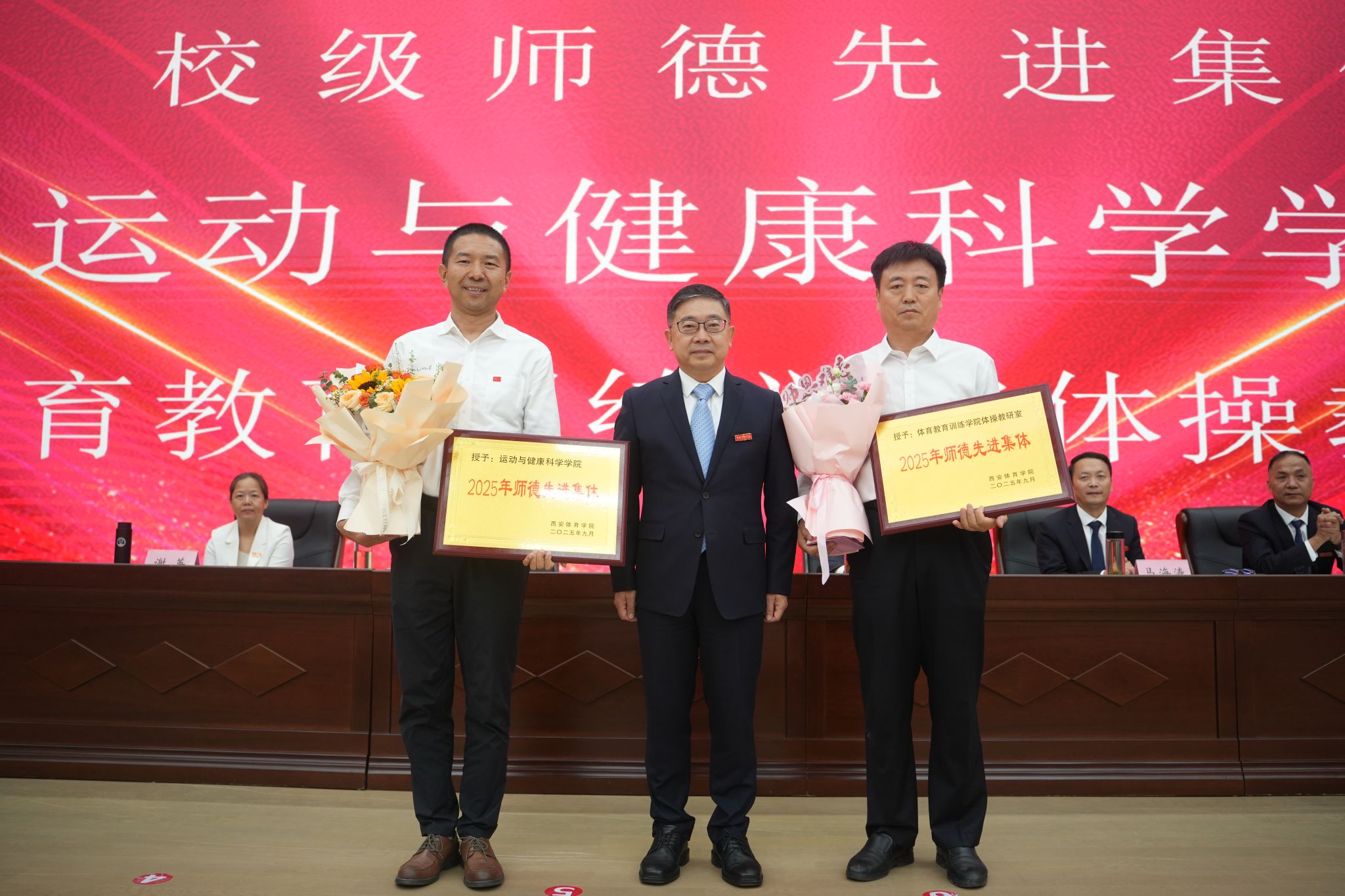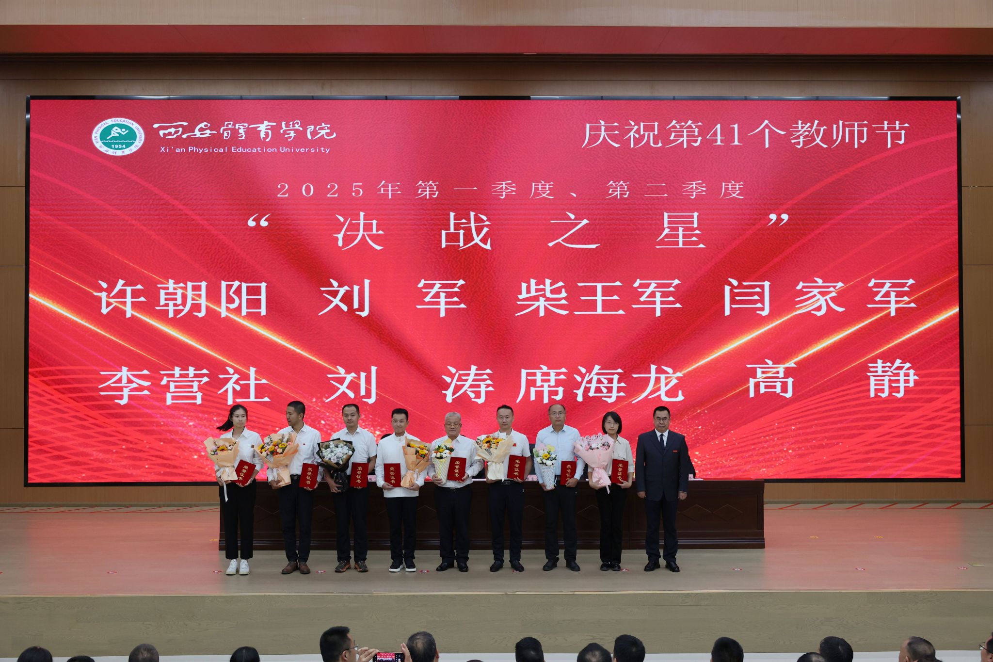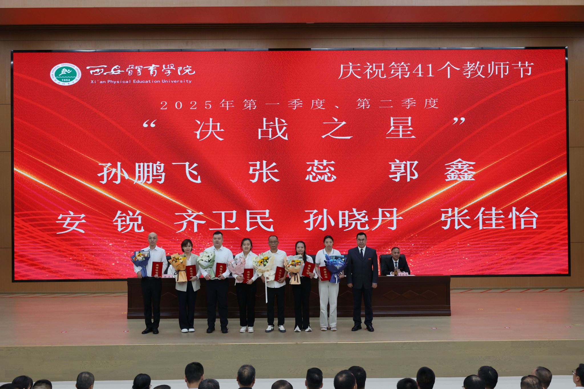 大会在庄严的国歌声中拉开序幕。党委副书记张卫国宣读表彰通报,对一年来在教学科研、育人管理、服务师生、校区建设等领域涌现出的先进集体与个人给予充分肯定。校领导依次为荣获“校级先进工作者(教学、科研、教练、省级人才)”“校级师德先进个人”“校级优秀辅导员”“365官网最美教师”“2025年度第一、二季度‘决战之星’”“校级师德先进集体”等荣誉称号的集体和教职工颁发奖牌证书,充分体现了学校对教师队伍建设的高度重视与深切关怀。