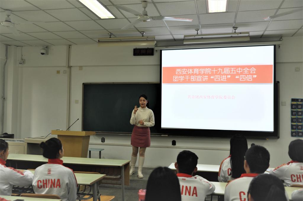 本次宣讲活动采用线上+线下相结合的方式,线上采用微视频解读和广播宣讲的形式宣传学习全会新要求;线下开展十九届五中全会精神进课堂、进社团、进宿舍、进餐厅“四进四信”宣讲活动,通过安排不同主题的“微课堂”,让全会精神走进学生、深入人心。同时,宣讲团发挥团属新媒体优势,全方位、多角度推进宣讲,在全校学生中形成学习贯彻党的十九届五中全会精神的浩大声势,使党的声音在青年学生中传得更远、更广、更深。