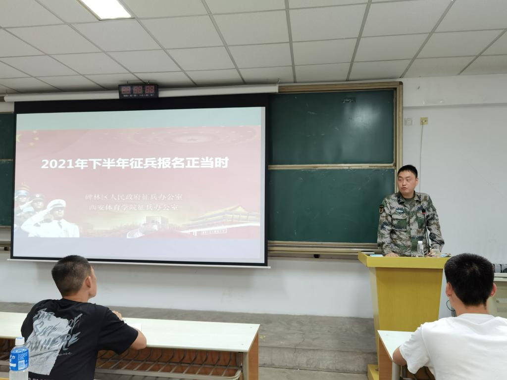 本网讯 为了鼓励大学生积极参军入伍,不断提升兵源素质、向军队输送高素质人才、推动国防和军队现代化建设,365官网武装部邀请碑林区武装部参谋侯豪6月28日为365官网应届毕业学生开展了“2021年下半年征兵报名正当时”专题征兵宣讲。