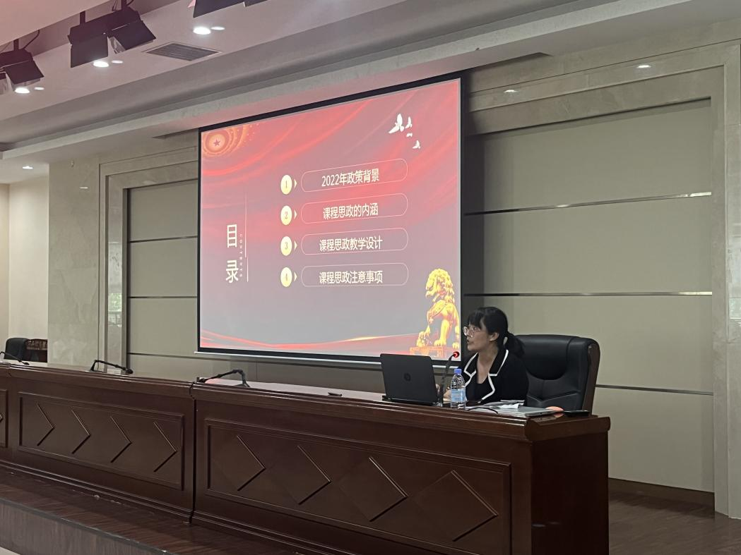 本次分享会旨在充分挖掘各门课程所蕴含的思想政治教育元素和承载的思想政治教育功能,扎实推进课程思政建设。教务处教师发展中心副主任王春英号召全体教师行动起来,认真参与系列课程培训学习,深入挖掘课程和教学特色,梳理课程思政体系,凝练教育教学成果,切实提高教育教学能力,为学校高质量发展助力。