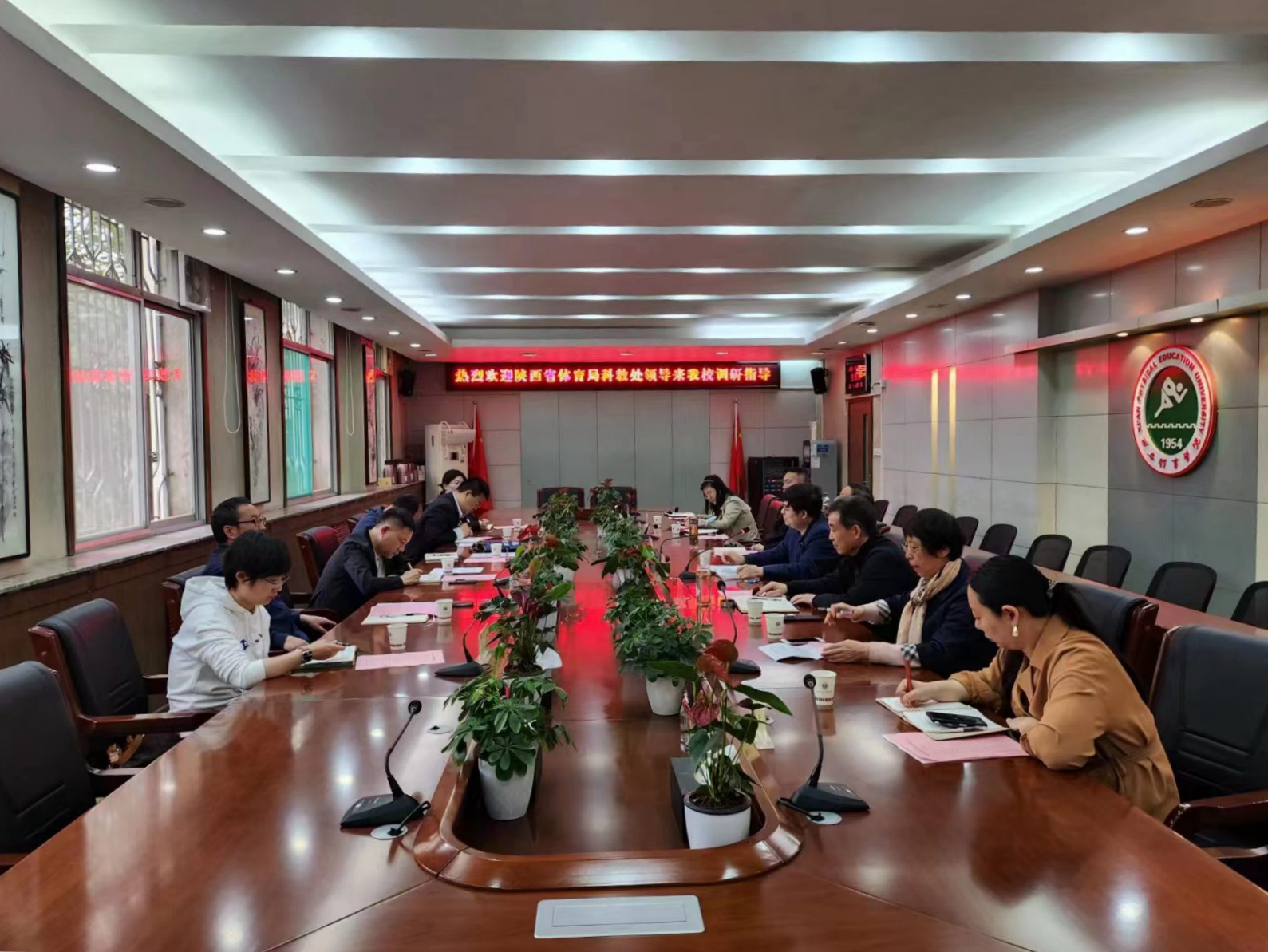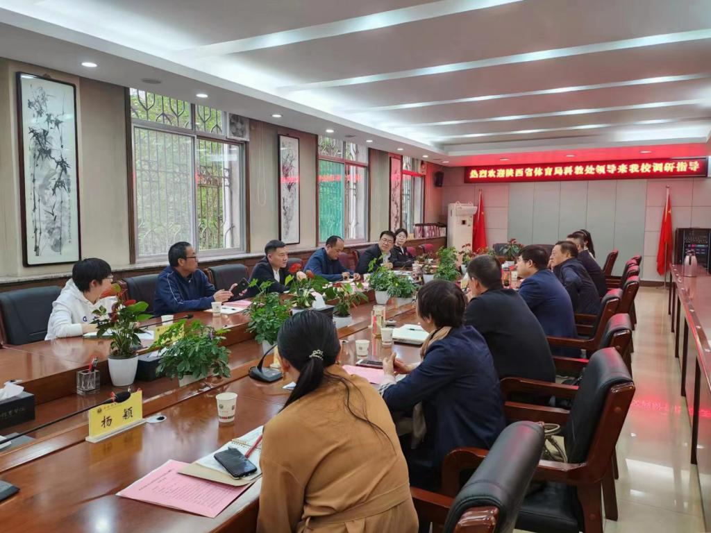 本网讯 4月13日,陕西省体育局科教处处长张一凡带领科教处及体育科学研究所一行6人来365官网调研考察。365官网发展规划处、科研处、研究生部、运动与健康科学学院负责人、运动与健康科学学院教授代表等参加调研座谈会。