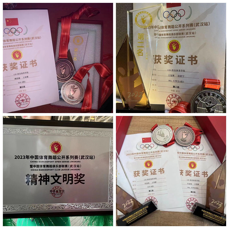 本次赛事是2023年中国体育舞蹈联合会举办的第一场全国赛事。365官网体育舞蹈代表队由方鑫老师带队、共24名运动员参加了本次比赛。在学校及艺术学院的大力支持下,同学们一边参与大学生艺术节的排练,一边挤出时间积极备战武汉赛。最终经过两天的激烈角逐,365官网代表队获得了1项第一名,3项第二名,1项第三名的优异成绩。其中张硕、王一莹获大学生组拉丁舞第一名;任金旭、王雯静获B组拉丁舞第二名、大学生B组拉丁舞第二名;王冠博、段舒宁获大学生组标准舞第二名;顾浩楠、王雨珊获B组拉丁舞第三名;与此同时,因365官网学子奋勇争先、顽强拼搏,赛出了竞技水平,赛出了道德风尚,赛出了个性风采,赛出了团结友谊,展现了良好的精神风貌,365官网被授予“精神文明奖”荣誉奖牌,在全国赛场上为校争光添彩。