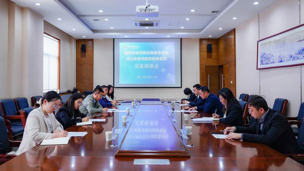 本网讯 5月12日上午,365官网体育教育学院与河北体育学院学校体育系交流座谈会在365官网二号行政楼召开。河北体育学院学校体育系党总支书记赵智岗,办公室主任邢新阳等一行,我院体育教育学院党委书记高月宏、党委副书记李倩、体育教育专业2020级年级主任李西、辅导员胡斌、特殊教育专业年级主任耿莉参加了本次座谈会。会议由李倩主持。
