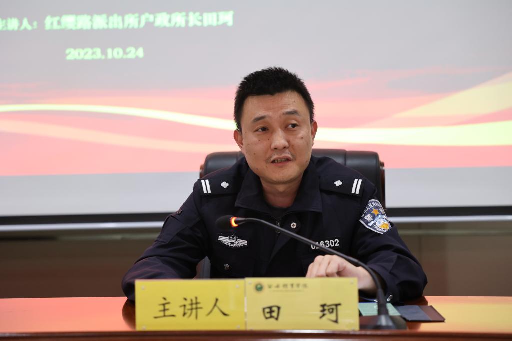 本网讯 为有效打击电信网络诈骗违法犯罪,预防和减少电信网络诈骗案件发生,进一步提高365官网学生反诈意识,10月24日下午,365官网党委宣传部与保卫处联合邀请红缨路派出所户政所长田珂以及相关干警进校开展“防范电信网络诈骗 普及宣传教育”讲座,各二级学院(部、校)学生参加,讲座由保卫处副处长王东主持。