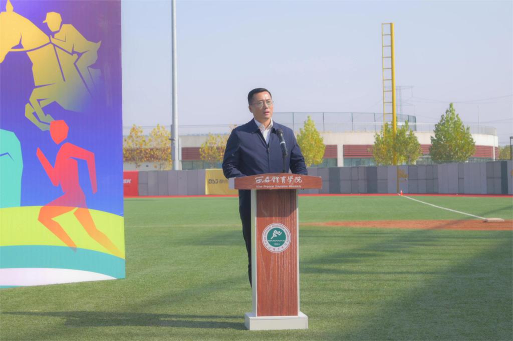 高月宏首先代表体育教育学院对参加本次陕西省现代五项宣传推广体验活动的各位领导、校企合作单位嘉宾、学生社团指导老师表示了热烈的欢迎和由衷的感谢。他指出,从2020年以来,体育教育学院深化校企合作,先后举办了第三届创新创业发展论坛暨校企合作单位专场招聘会、新兴运动项目推广体验活动等多次校企合作活动,今年六月底成立了八个新兴项目学生社团。本次活动与陕西省现代五项协会深入合作,共同推进现代五项运动的普及与推广,充分发挥学生社团的作用,促进学生扩宽专项技能起到了非常重要的作用。高月宏表示,今后体育教育学院将会继续展开更多的校企合作项目,大力支持新兴项目社团活动,不断扩大学生社团的影响力,拓宽学生专项技能,为未来更多学生熟悉并掌握新兴项目打下良好的基础。