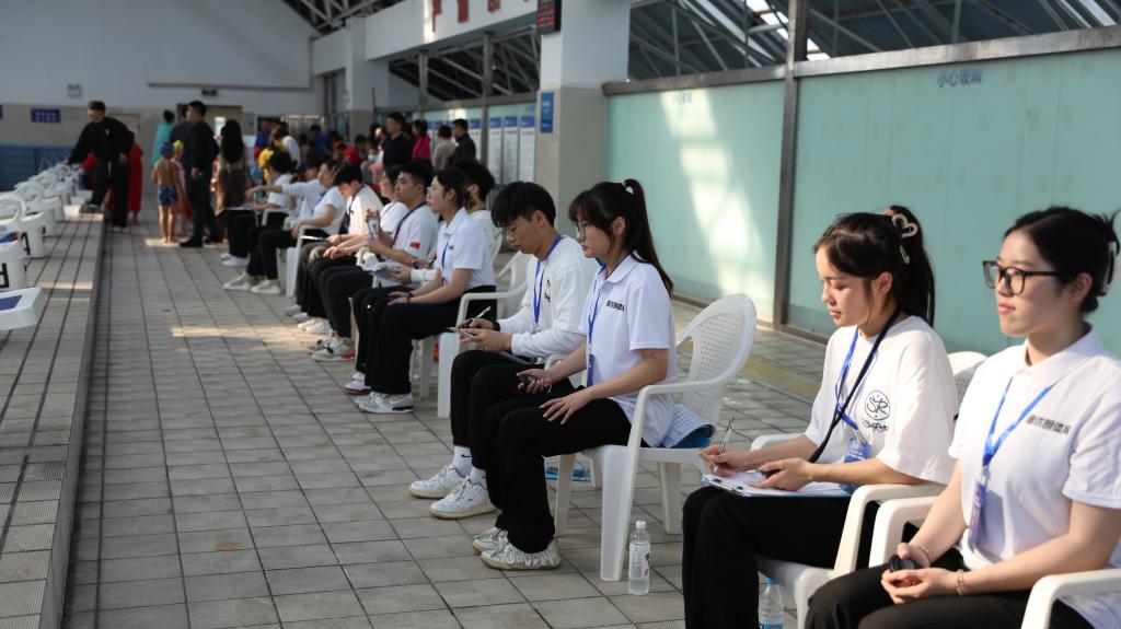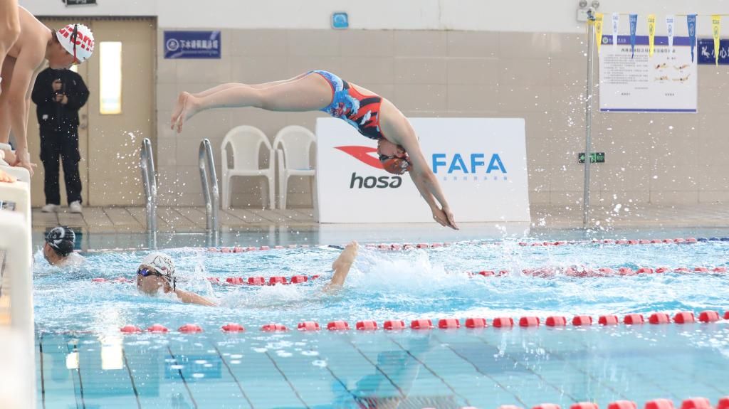 上午9时15分,随着发令枪响,300余名参赛选手挥臂逐浪,如飞鱼般飞速前进,前伸、抱水、挥臂、打腿,收、翻、蹬等转身动作也是协调连贯,在一声声加油中,选手们展现蛙泳、自由泳、蝶泳的矫健身姿,水花飞溅间,你追我赶,劈波斩浪,奋勇争先,呈现出一道速度与技术较量的风景线,为现场观众带来了一场视觉盛宴,引来阵阵欢呼。
