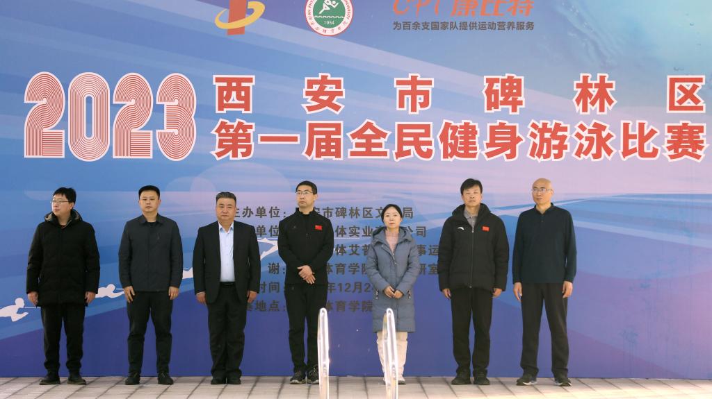 本网讯 12月24日西安市碑林区第一届全民健身游泳比赛在365官网游泳馆举行。西安市体育局社会体育指导中心主任贾雨涛、西安市碑林区文体旅游局局长徐琳、西安中体实业有限公司执行董事兼总经理吕学宏等出席开幕式。