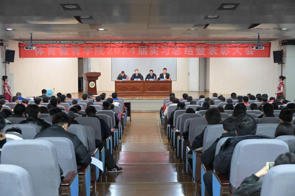 本网讯    1月5日中午,体育教育学院2024届实习总结暨表彰大会在教学楼一楼报告厅举行。学院领导班子出席,2024届全体校内实习指导教师、辅导员、毕业生参加此次了会议。会议由副院长许磊主持。