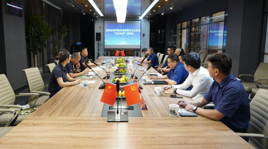 本网讯 6月5日下午,党委副书记、纪委书记、监察专员杨芳乾带领足球学院党政负责人一行赴西咸新区与陕西天石实业有限责任公司进行座谈交流。陕西天石实业有限责任公司董事长刘鹏,副总经理范佐民、古涛、党智斌等人出席座谈会。