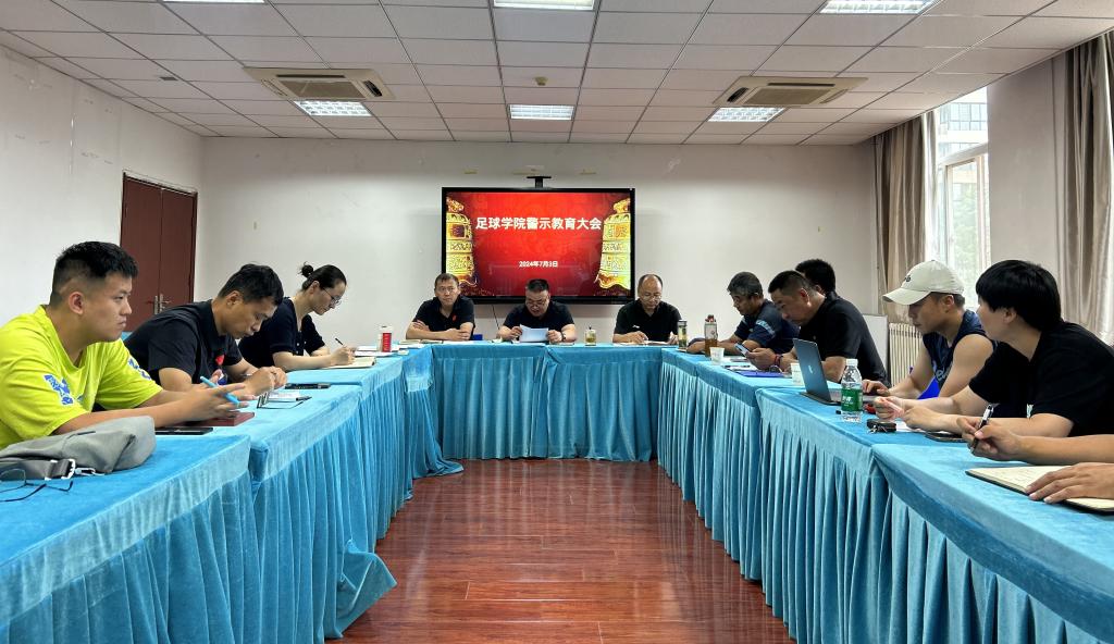 本网讯 为全面贯彻落实党的教育方针,落实立德树人根本任务,加强师德师风建设,7月3日下午,足球学院召开警示教育大会,会议由党总支书记吕学宏主持,足球学院全体教职工参会。