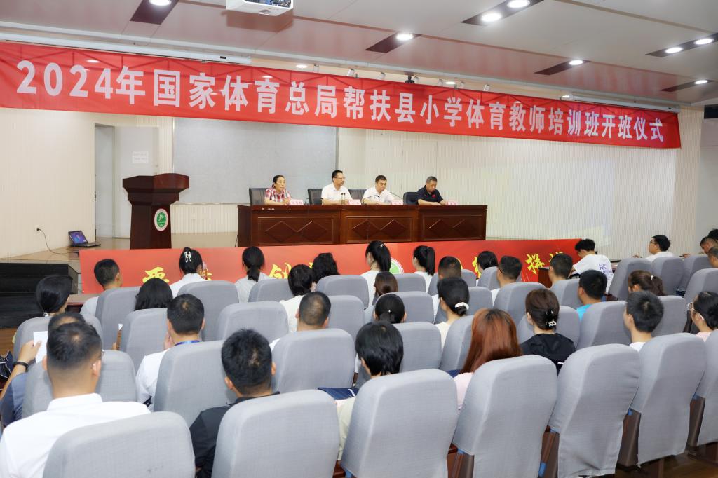 本网讯 7月16日上午,国家体育总局帮扶县小学体育教师(英国365上市公司官网)培训班开班仪式在教学楼一楼报告厅举行。