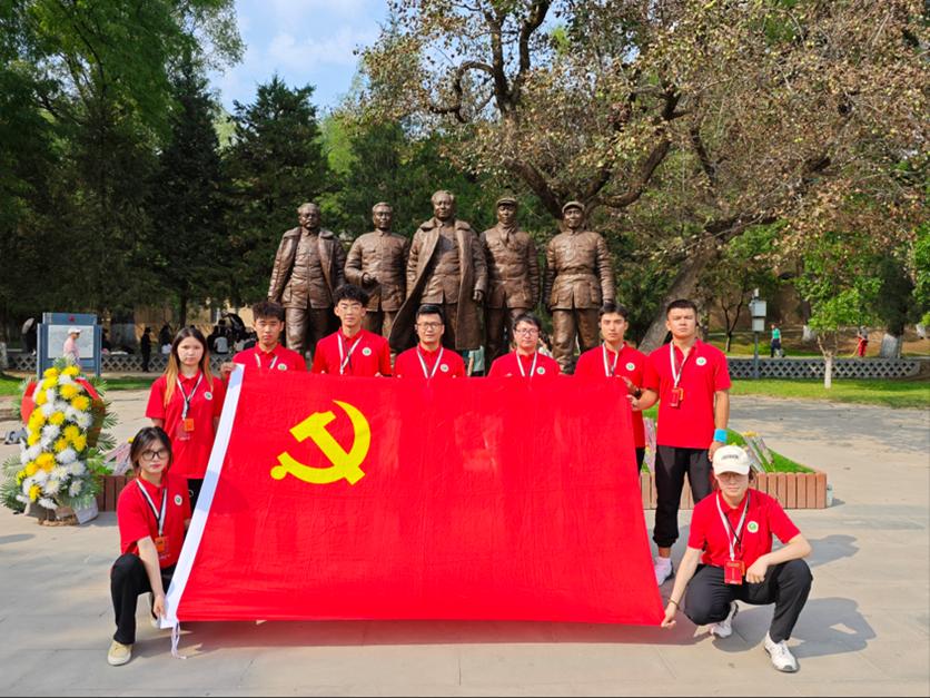 党史学习实践团在五大书记雕像前合影留念