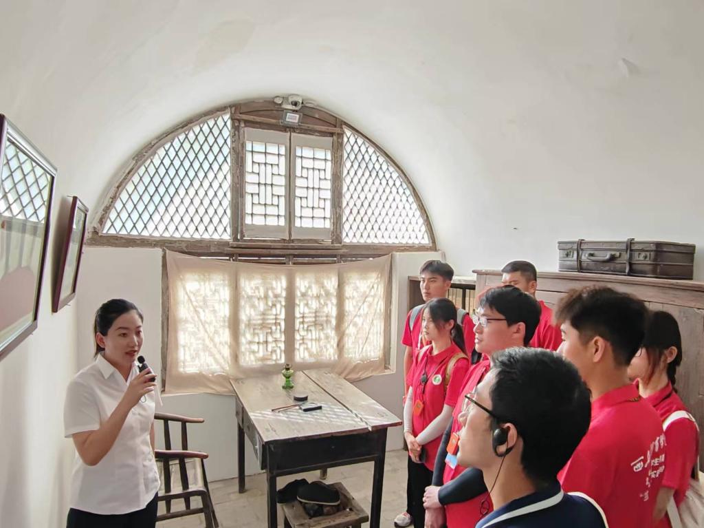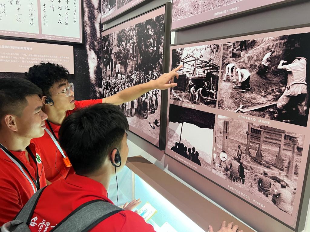 在延安文艺纪念馆参观学习校舍建造的艰辛过程