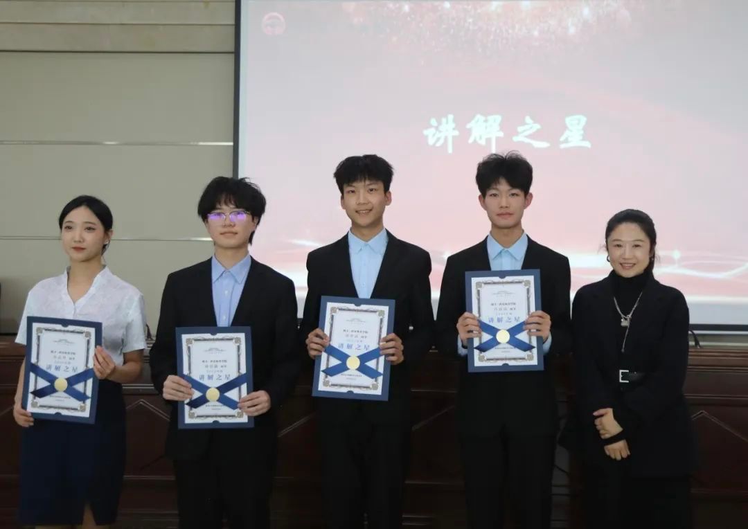 姚静为荣获“讲解之星”的同学颁奖