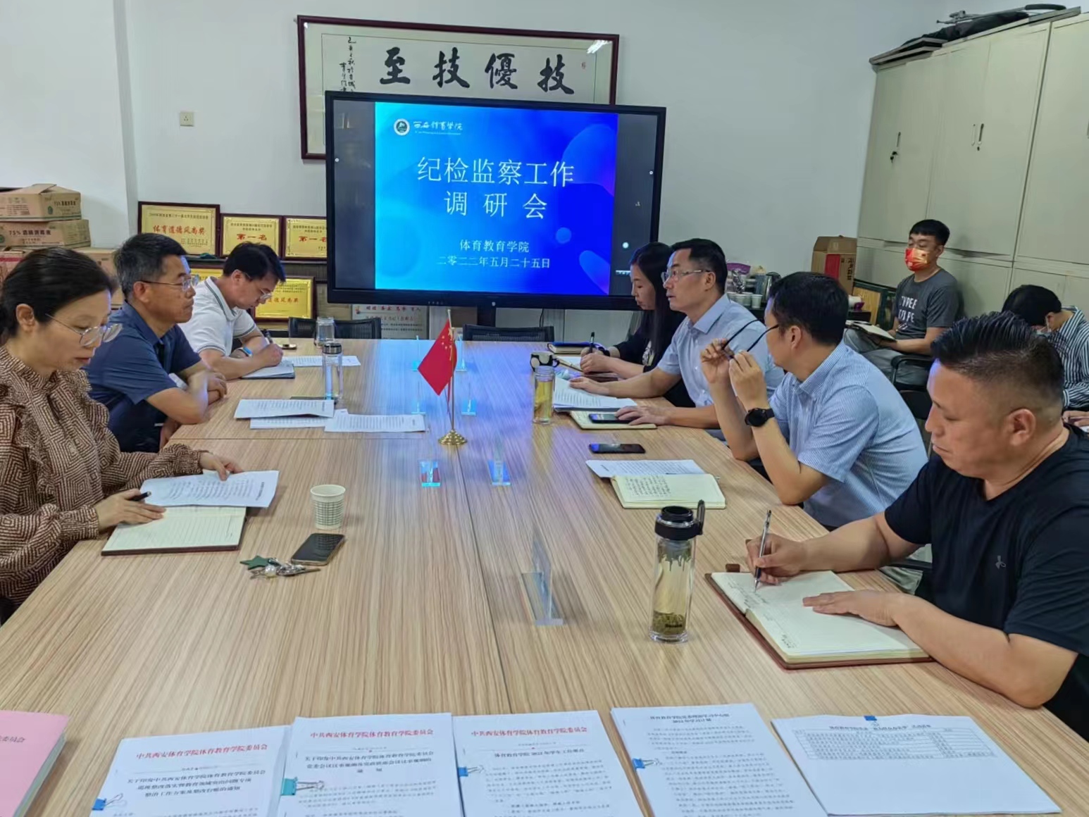 5月25日上午,校党委副书记、纪委书记、监察专员杨芳乾带领调研组李抢辉、杨少玉一行三人到体育教育学院开展纪检监察工作调研,学院党政班子、办公室人员、教研室主任、年级主任参加了会议。
