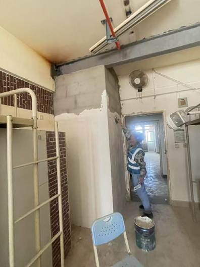 7、排烟井涂料、及风筏未安装施工,疏散指示灯脱落未恢复