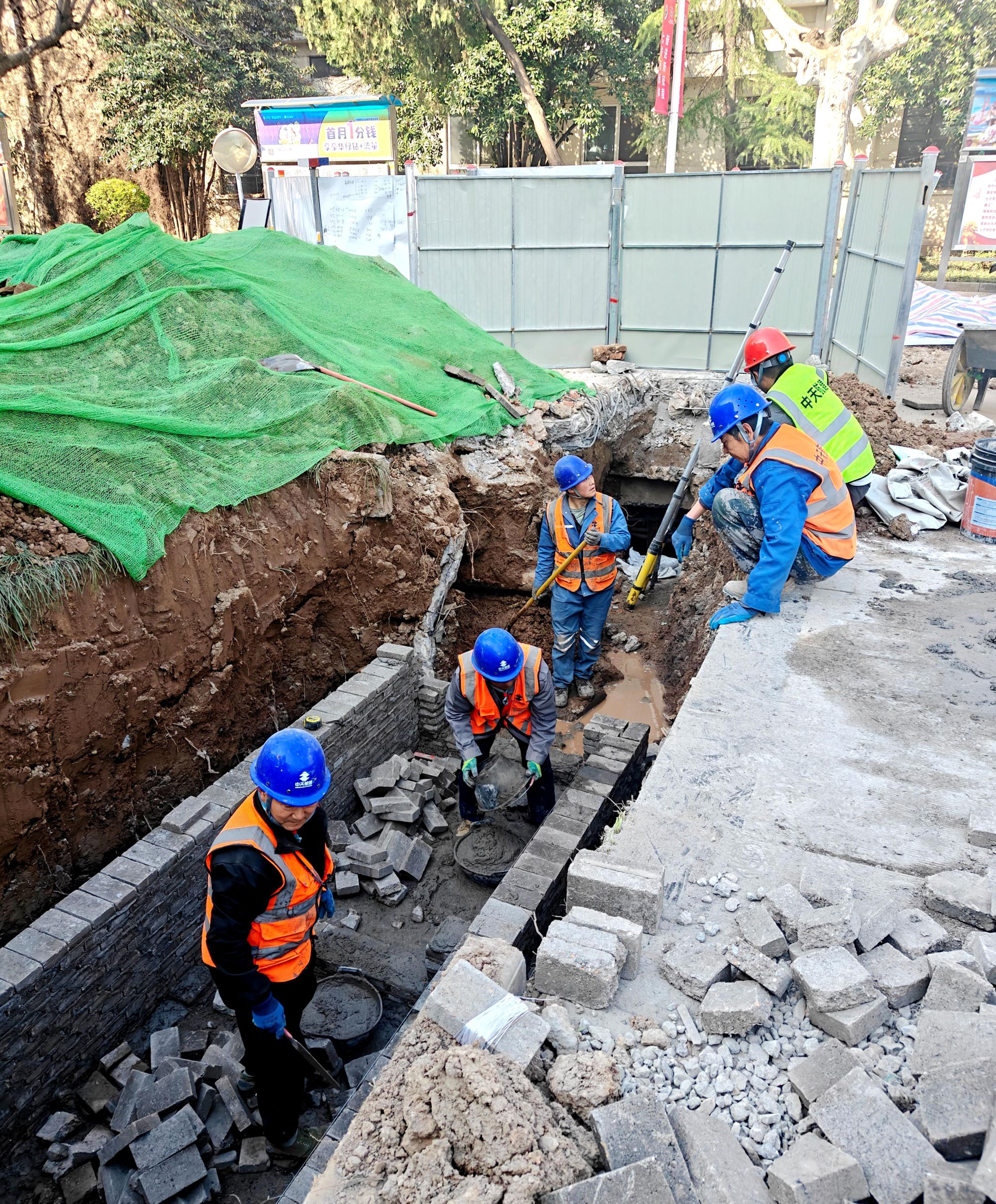 3月19日,在含光校区消防整改施工现场,工人们正紧张有序地进行基坑开挖、垫层浇筑、井壁砌筑等作业。与此同时,管道敷设现场,工人们正熟练地将一根根消防管道连接起来,并进行加固处理,工程进度加速推进。