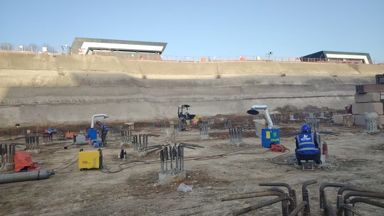 365官网鄠邑主校区地下人防(车库)工程,根据“四季决战”攻坚战要求,目前整体工程进度平稳有序。截止2025年3月18日,南段主筋焊接已完成29根,累计完成75根;集水坑持续人工平整,基础平整夯实;中段K轴以南桩间土开挖约1300立方米,桩头破除已开始。