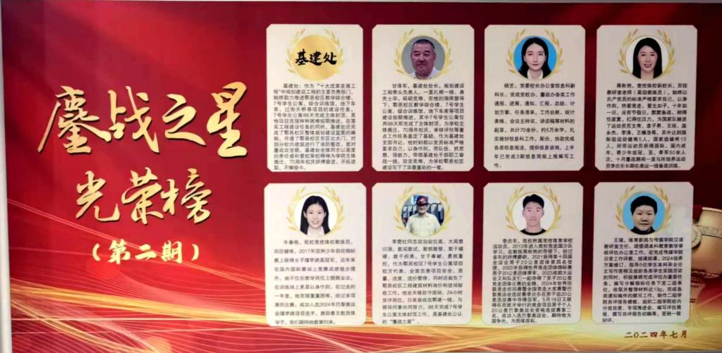 7月19日,学院召开“十大工程”第十三次工作推进会,会上宣布了第二季度“鏖战之星”表彰决定,其中基建处获评部门鏖战之星荣誉称号,甘泽军、李营社获评个人鏖战之星荣誉称号。