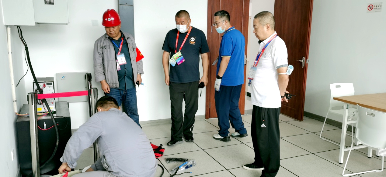 基建处处长甘泽军(中)带领工作人员检查场馆电力设备运转情况