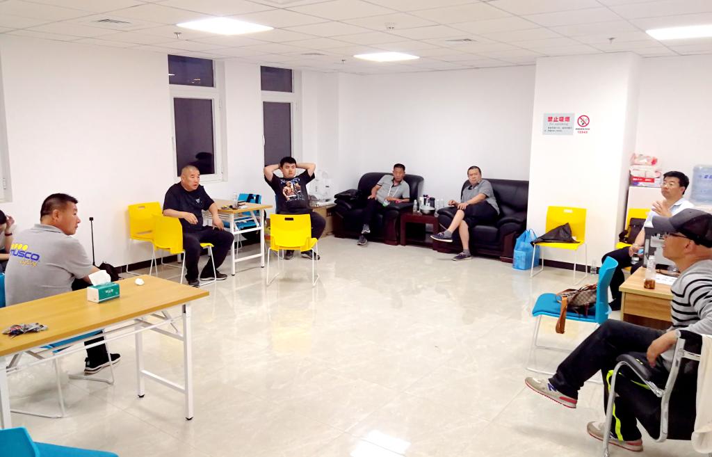 基建处处长甘泽军与各工作负责同志商讨措施办法
