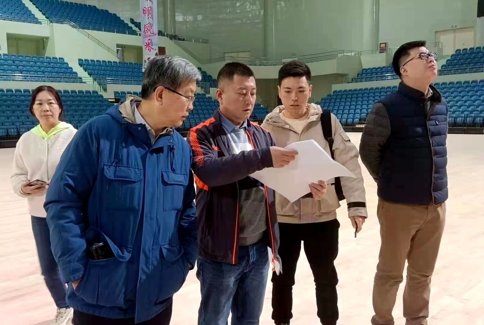 专家查看场馆布局