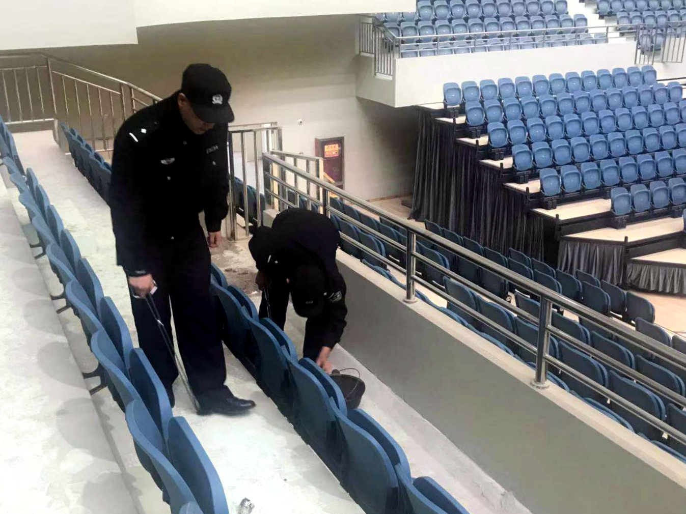 鄠邑区公安局组织警员打扫手球馆看台卫生