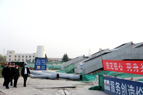 在施工现场,基建处处长甘泽军向裴靖瑜详细介绍了项目建设情况与下一阶段建设规划,裴靖瑜就项目建设过程中遇到的问题与李富生等进行了交流。