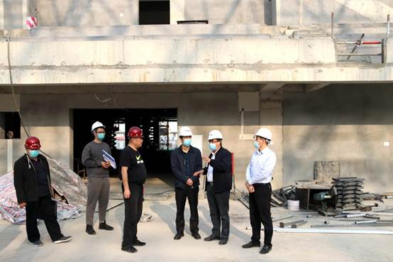 在施工现场,副校长李富生向朱昱、张王平一行介绍了手球馆各个区域的使用规划,对其他在建场地的情况进行了详细说明。