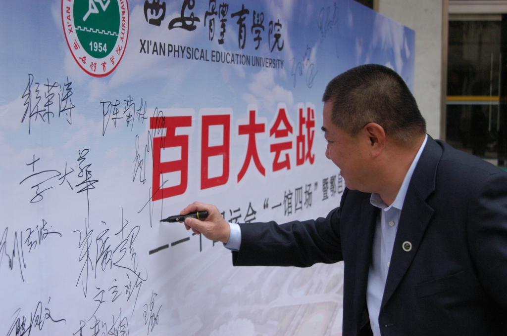 为全面贯彻落实第十四届运动会筹委会第三次秘书长会议精神,进一步推进我院鄠邑新校区建设,2018年3月23日下午3点由院党委组织在教学楼一楼报告厅召开了“英国365上市公司官网“一馆四场”暨鄠邑新校区建设百日大会战誓师动员大会”。参与本次会议的人员有全体院领导、全员副高级以上职称教师、科级以上干部、新校区建设指挥部办公室、基本建设组、资金筹措组、监察审计组等相关人员。朱元利对本次会议进行了主持。