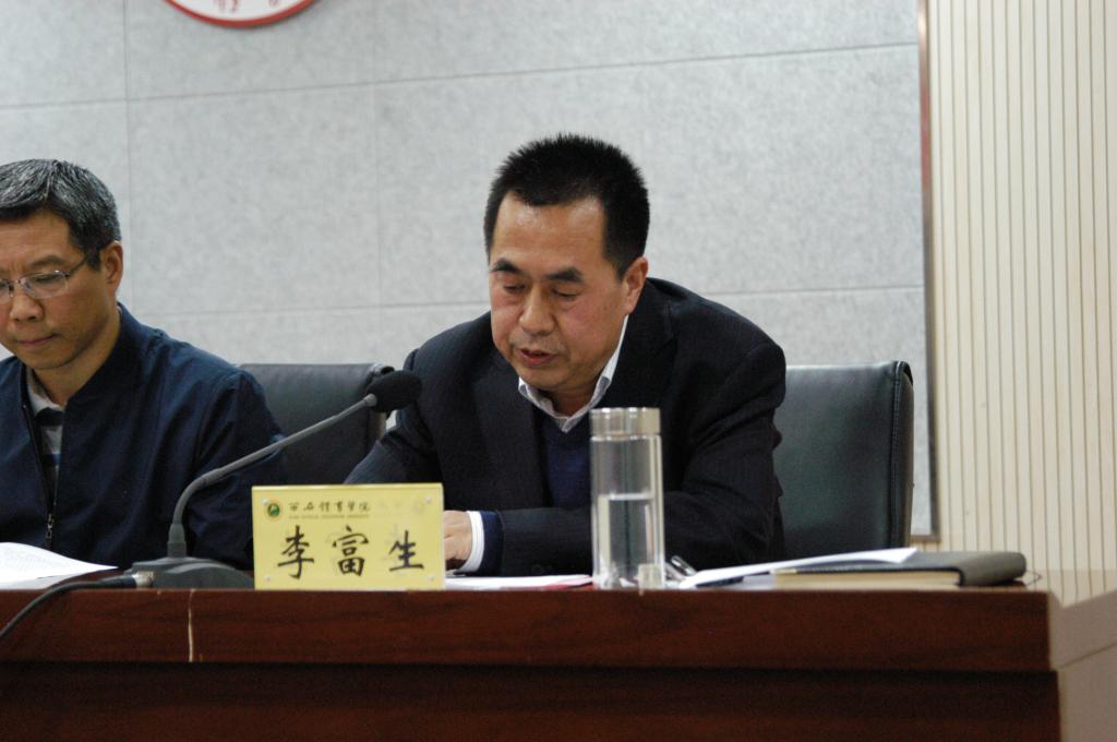 分管副院长李富生就全运会“一馆四场”建设进展向大会做了汇报,他主要从我院承担场馆建设的主要任务、工作进展、存在问题、工作建议、心得体会等五个方面进行了阐述,尤其就土地报批、可研报告批复、筹措资金等方面存在的问题与困难向与会人员做了专门说明。