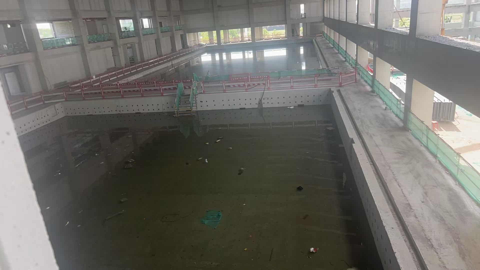 风雨操场标准池避水试验顺利完成、热身池蓄水有序推进