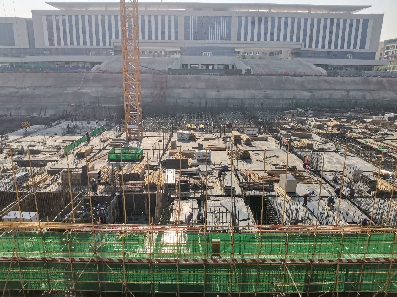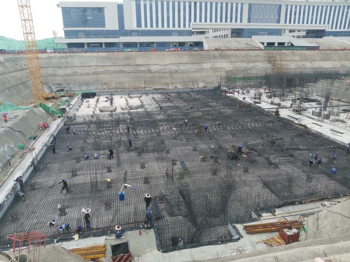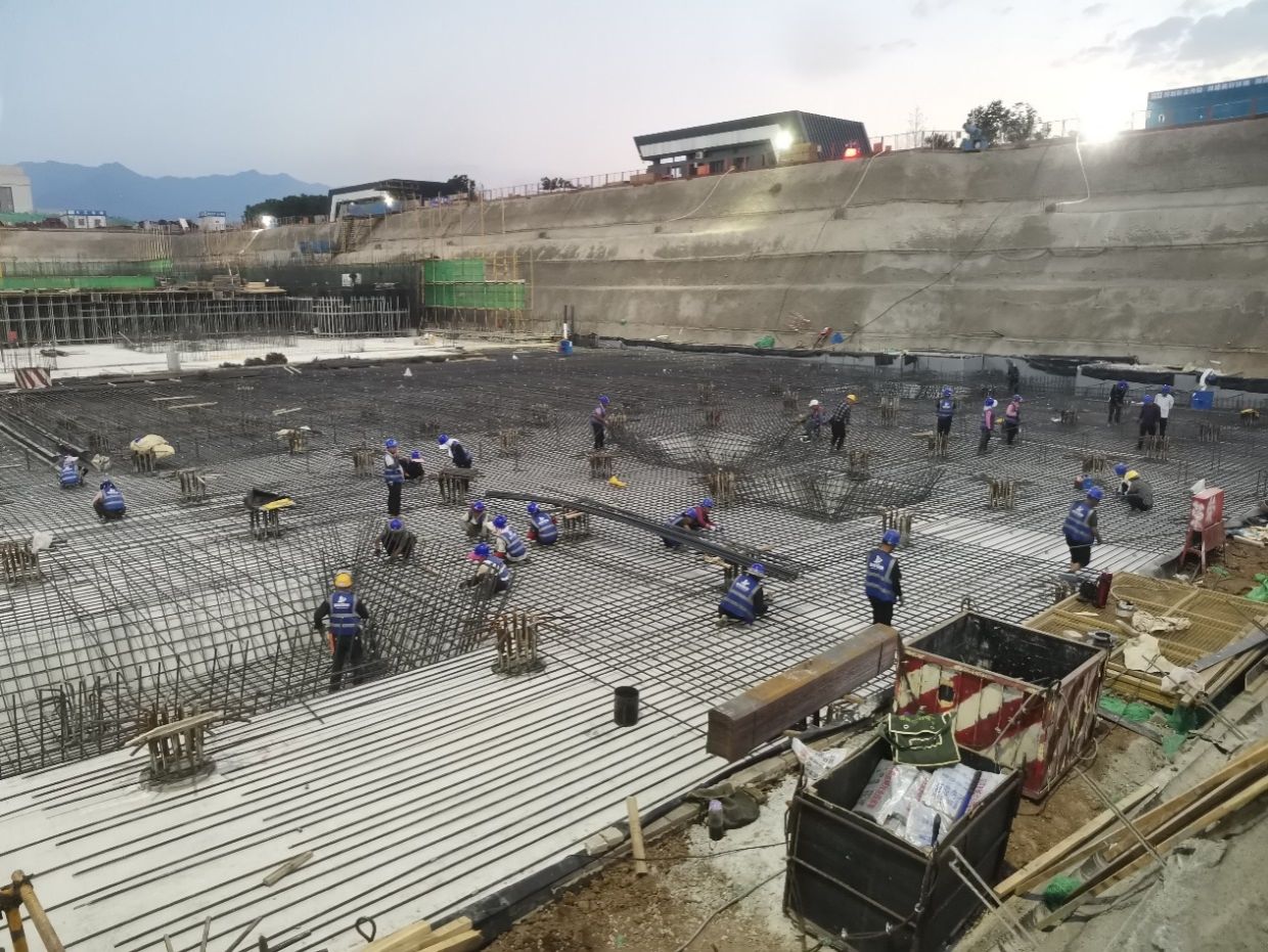 北段区域基础筏板浇筑施工按计划推进,正加快主体钢筋绑扎施工进度,为后续混凝土灌注创造条件。