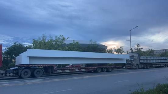 当晚架设的钢箱梁分三段吊装,共计6片,每片长23米、平均重约32吨。施工团队通过精准测算吊装角度、全程监控受力数据,确保架设精度误差控制在3毫米内。作为校区重要交通配套设施,天桥建成后将实现东西区教学区与生活区的安全快速连通,并彻底解决师生穿越市政交通主干道时的安全风险。