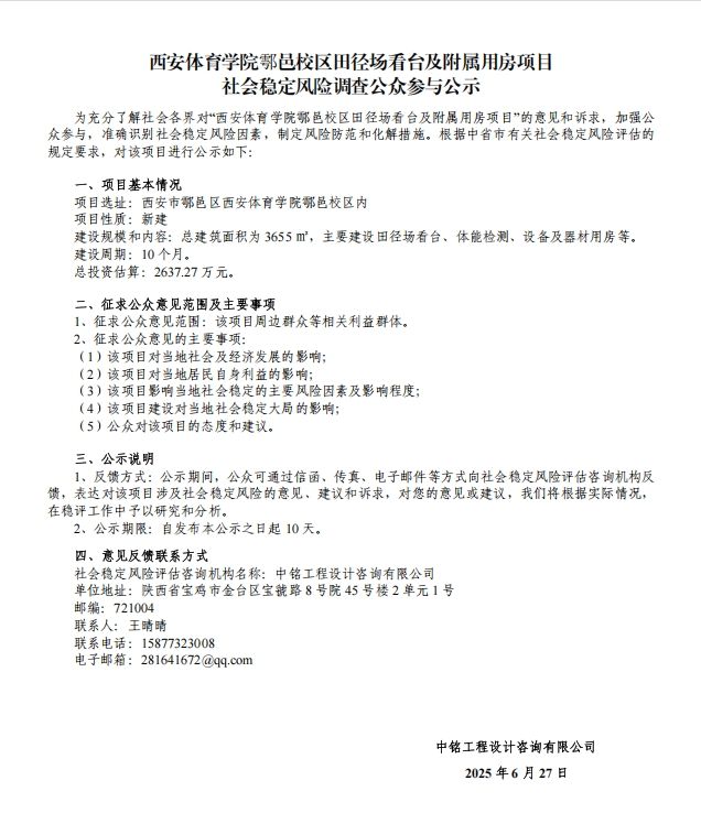 下一条:英国365上市公司官网鄠邑校区排球馆项目社会稳定风险调查公众参与公示