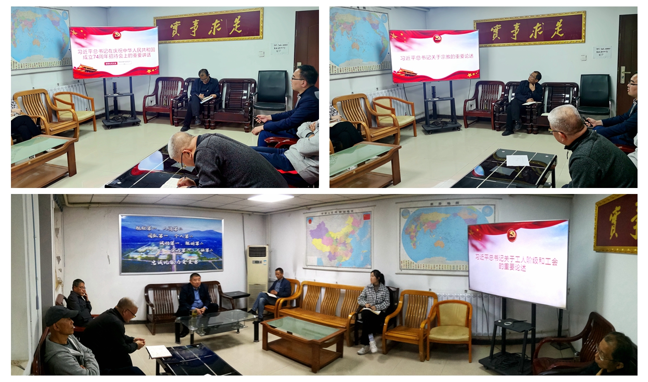 本次学习活动围绕学院教职工10月政治理论学习,《关于开展铸牢中华民族共同体意识系列活动的通知》,《关于认真学习宣传贯彻<习近平关于工人阶级和工会工作论述摘编>的通知》展开,支部宣传委员倪威胜领学了《习近平总书记在庆祝中华人民共和国成立74周年招待会上的重要讲话》、《习近平总书记关于宗教的重要论述》与《习近平关于工人阶级和工会工作论述摘编》选摘内容。甘泽军就学习内容提问了与会党员,并在总结时强调,党员要始终树牢党员意识形态,扎好思想篱笆,自觉听党话、跟党走,以良好的言行做新时代合格党员。