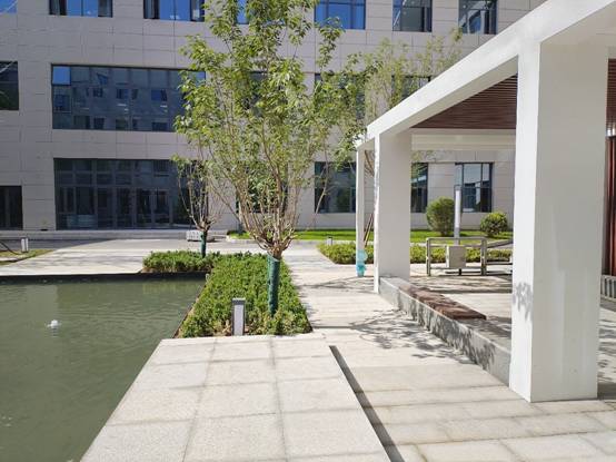 截止5月16日,教学综合楼室外北庭景观鱼池项目已竣工,绿植、鱼苗等已布置完毕,剩余物料整理及垃圾清运、路面除尘等收尾工作正常进行中,预计下周完成全部收尾工作并移交学校。