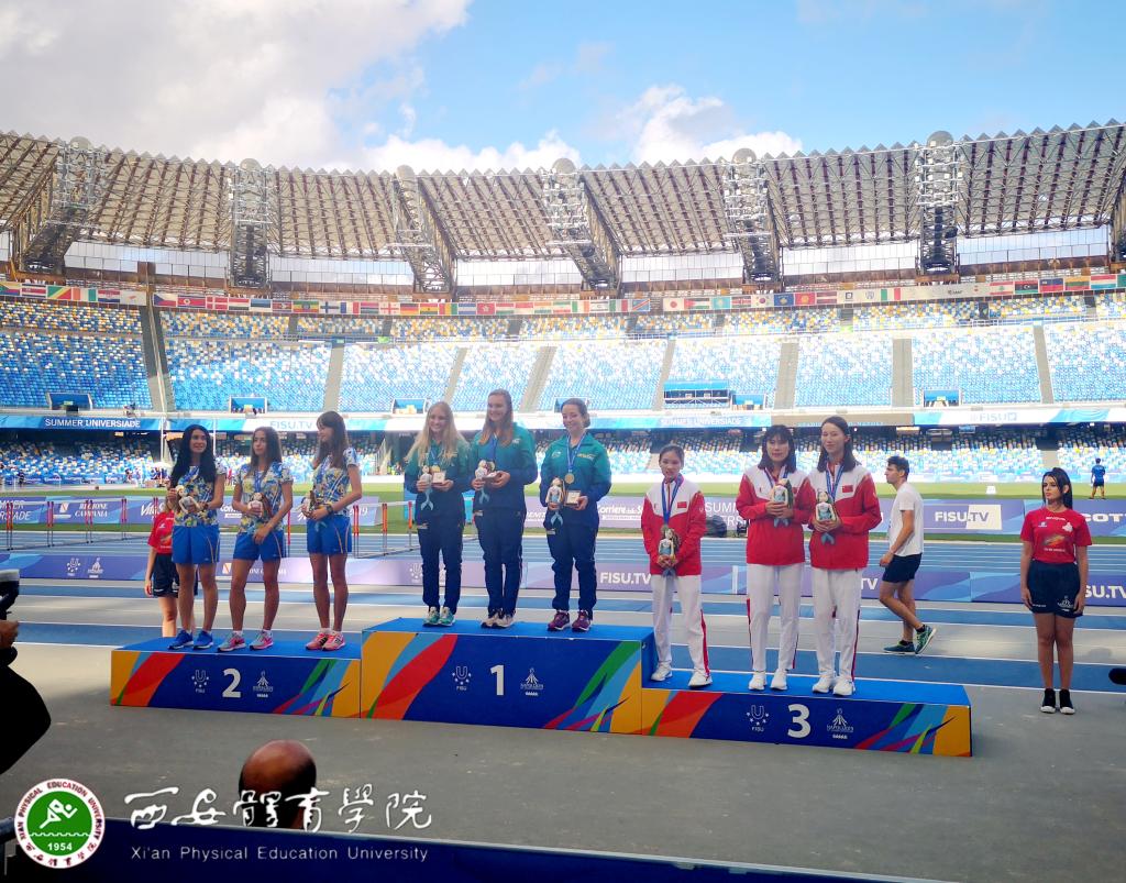 本网讯 7月12日,在意大利那不勒斯举行的第三十届世界大学生夏季运动会上,365官网学生苏文秀与队友王娜、刘玉顽强拼搏,发挥出色,共同获得女子20公里竞走团体季军。