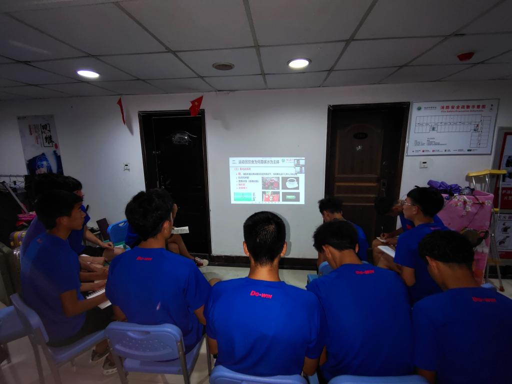 科学膳食对于提高运动员身体机能有很大的促进作用,根据不同项目特点进行不同的膳食营养能很大提高运动员的战斗力。为备战十四运,使运动员能够科学膳食,竞技体校专门聘请了刘军教授为餐厅饮食做指导,并在吃饭时间亲自为运动员讲解科学膳食的知识,使运动员对于科学膳食有了更深的了解。