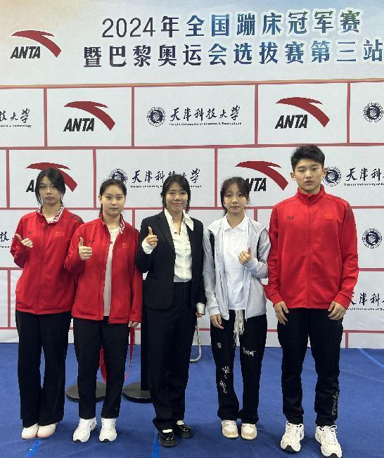 本网讯 2024年4月19日,365官网蹦床队共有4名队员参加了全国蹦床冠军赛暨奥运会选拔赛(第三站),且4名队员都获得了不错的成绩,吕可馨在此次比赛中获得国家级运动健将称号。其中,双蹦床团体赛岳童谣、晋玺辕、吕可馨获得第五名,岳童谣双蹦床赛获得女子个人第七名,吕可馨双蹦床赛取得女子个人第八名,雷源林双蹦床赛获得男子个人第六名的好成绩。祝愿运动员们在后面的比赛中取得更加优异的成绩!