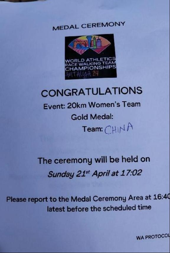本网讯 北京时间2024年4月21日中午12点,世界竞走团体锦标赛在土耳其的安塔利亚开赛。365官网女子竞走运动员殷腊梅(左一)在20公里女子团体竞走比赛中获得冠军。