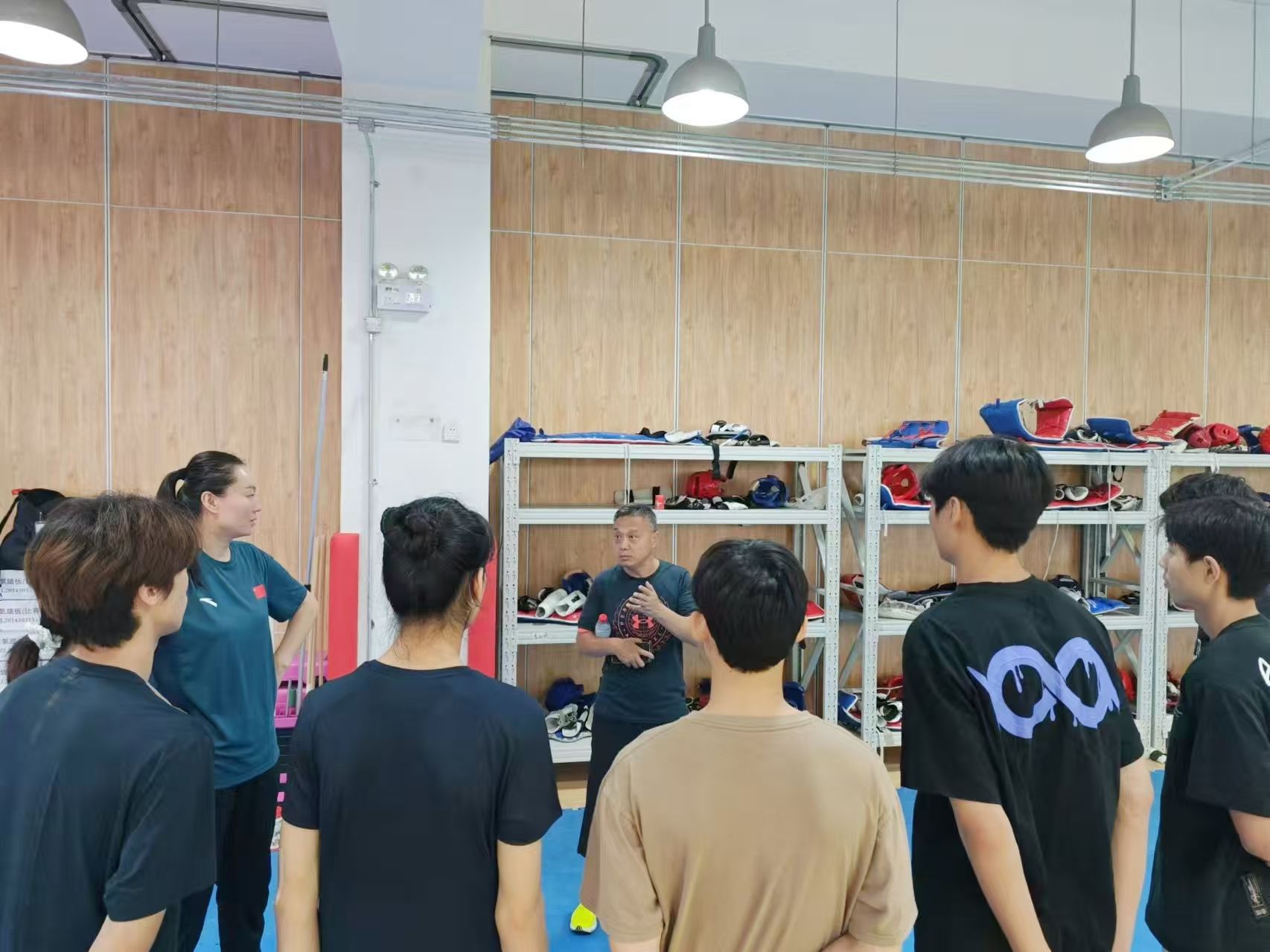 近日,竞技运动学院院长许伟来到跆拳道队训练馆,亲切看望即将于明日启程前往安康进行外训的队员们,为大家加油鼓劲,送上学院的关怀与期望。此次外训是队伍备战第十五届全运会的重要环节,旨在通过更系统、更具针对性的训练,进一步提升竞技水平,为冲击佳绩筑牢根基。