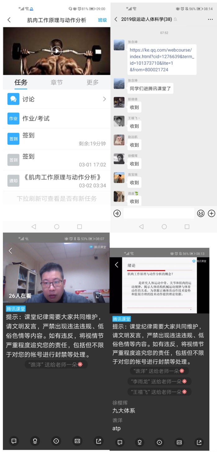 2020年3月2日是运动与健康科学学院师生网上开启开学第一课,此刻我们相约云端,隔空交流,虽身处不同地方,但心在一起,这既是对全院广大师生众志成城、打赢疫情防控阻击战的再检验,也是学院师生凝聚365官网精神、汇聚正力量,弘扬爱国奋斗精神的再出发。上课首日,不论是老师还是同学对于线上教学都是一个摸索阶段,但是我院教师和同学认真的态度,定可以打赢这场胜仗。也希望大家继续坚定信息,以坚实的步伐和乐观的心态期待明天,莫辜负这个伟大的时代,莫耽误宝贵的学习时光。