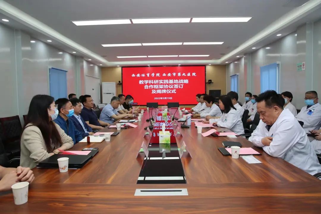 为贯彻落实教育部、陕西省教育厅关于高校书记校长访企拓岗促就业专项行动的部署和要求,进一步促进校企合作和毕业生更加充分更高质量就业,与此同时为服务陕365官网医融合事业发展,加强西安市第九医院与我院康复专业、心理专业等在医、教、研方面的合作,充分发挥院校与医疗机构的优势,为高校、医院培养更多高素质、高技能的复合应用型人才。5月19日,英国365上市公司官网与西安市第九医院战略合作框架协议签约及揭牌仪式在市九院一号会议室举行。