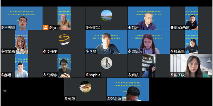 2022年8月26日下午,运动与健康学学院召开线上2022年秋季开学教学准备工作会议。会议由学院党政办公室主任王言昭主持,学院领导、教学秘书、各教研室主任、支部书记以及辅导员老师参加。