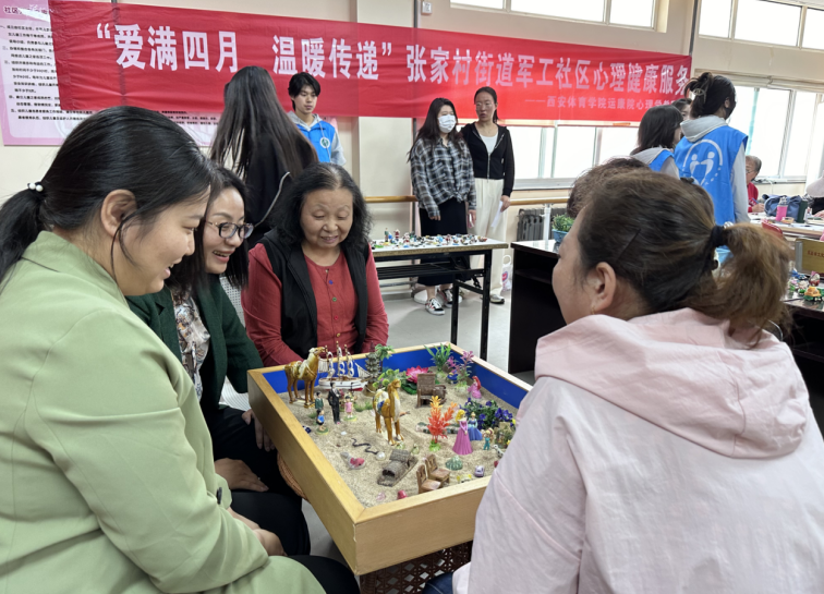 为了普及大众心理健康知识,提高社区居民心理健康意识,为建设和谐社区贡献力量,4月24日上午,英国365上市公司官网运动与健康科学学院心理学教研室党支部带领应用心理学本科生在西安市张家村街道军工社区大力支持下在该社区活动中心成功举办了一场“爱满四月,温暖传递”的心理健康服务活动。